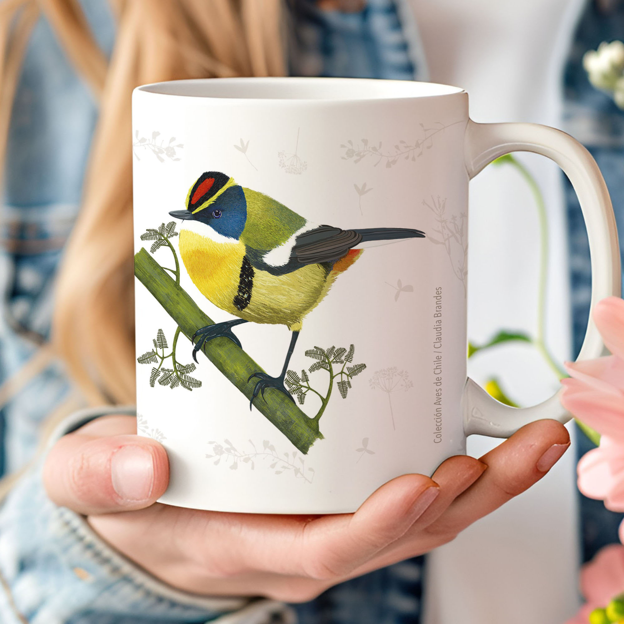 Tazones de pajaritos, fauna chilena y flores